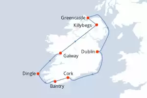 Itinerario : Dublin, Cork, Bantry, Dingle, Galway, Killybegs, Greencastle, Dublin