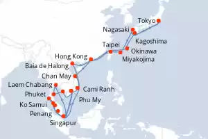 Itinerario : Singapur, Laem Chabang, Ko Samui, Sihanoukville, Phu My, Penang, Phuket, Langkawi, Kuala Lumpur, Singapur, Cami Ranh, Baia de Halong, Hong Kong, Taipei, Miyakojima, Nagasaki, Tokyo