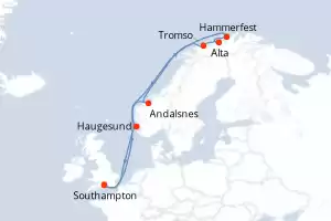 Itinerario : Southampton, Andalsnes, Hammerfest, Alta, Tromso, Haugesund, Southampton