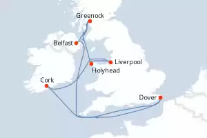 Itinerario : Dover, Holyhead, Liverpool, Greenock, Belfast, Dun Laoghaire, Cork, Dover
