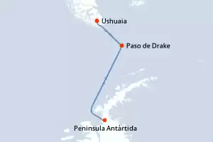 Itinerario : Ushuaia, Paso de Drake, Peninsula Antártida, Paso de Drake, Ushuaia