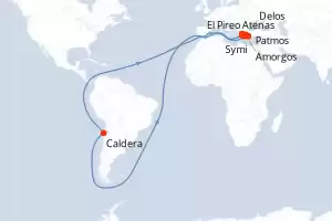 Itinerario : El Pireo Atenas, Heraklion, Santoríni, Rodas, Amorgos, Delos, Mykonos, Hidra, El Pireo Atenas