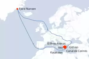 Itinerario : El Pireo Atenas, Canal de Corinto, Itea, Katakolon, Githion, Monemvasia, Fjord Nansen , Hidra, El Pireo Atenas