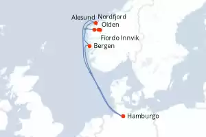 Itinerario : Hamburgo, Bergen, Olden, Innvikfjorden, Nordfjord, Alesund, Hamburgo