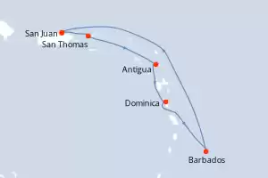 Itinerario : San Juan, San Thomas, Saint Martin (Antilles Néerlandaises), Antigua, Dominica, Barbados, San Juan