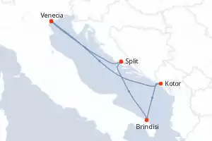 Itinerario : Venecia, Kotor, Brindisi, Split, Venecia