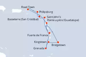 Itinerario : Bridgetown, Kingstown, Grenada, Fort-de-France, Pointe a pitre (Guadalupe), Road Town, Philipsburg, Basseterre (St Kitts), Saint John's, Fort-de-France, Pointe a pitre (Guadalupe), Bridgetown