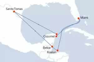 Itinerario : Miami, Cozumel, Costa Maya, Santo Tomas, Belice, Roatan, Miami