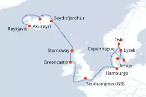 Itinerario : Southampton, Greencastle, Stornoway, Seydisfjordhur, Akureyri, Reykjavik