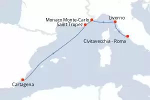Itinerario : Cartagena, Saint Tropez, Monaco Monte-Carlo, Livorno, Civitavecchia - Roma