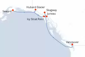 Itinerario : Seward, Icy Bay, Hoonah, Skagway, Juneau, Wrangell, Vancouver